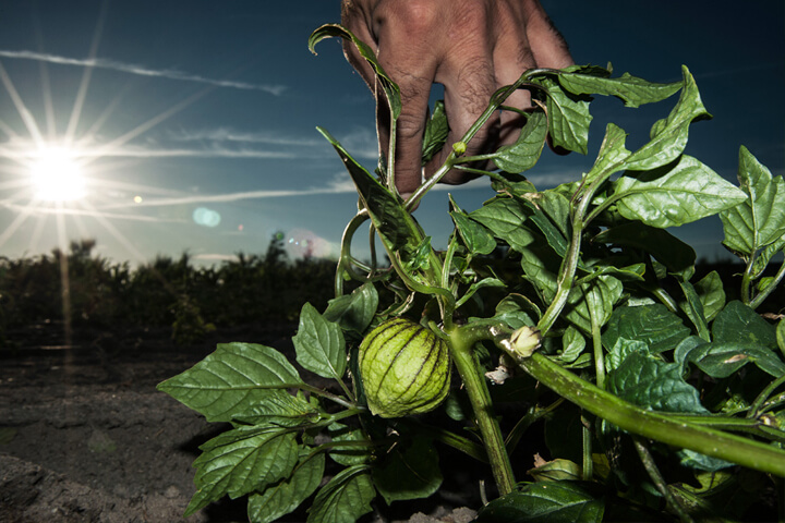 En México existen muchas variedades de esta fruta. De ahí que para la cocina del restaurante sea esencial contar con el tomatillo verde –fundamental para las salsas- o el miltomate, sembrado entre milpas, un sistema de producción antiguo en el que esta hortaliza comparte tierras con calabazas, fríjoles y maíz.